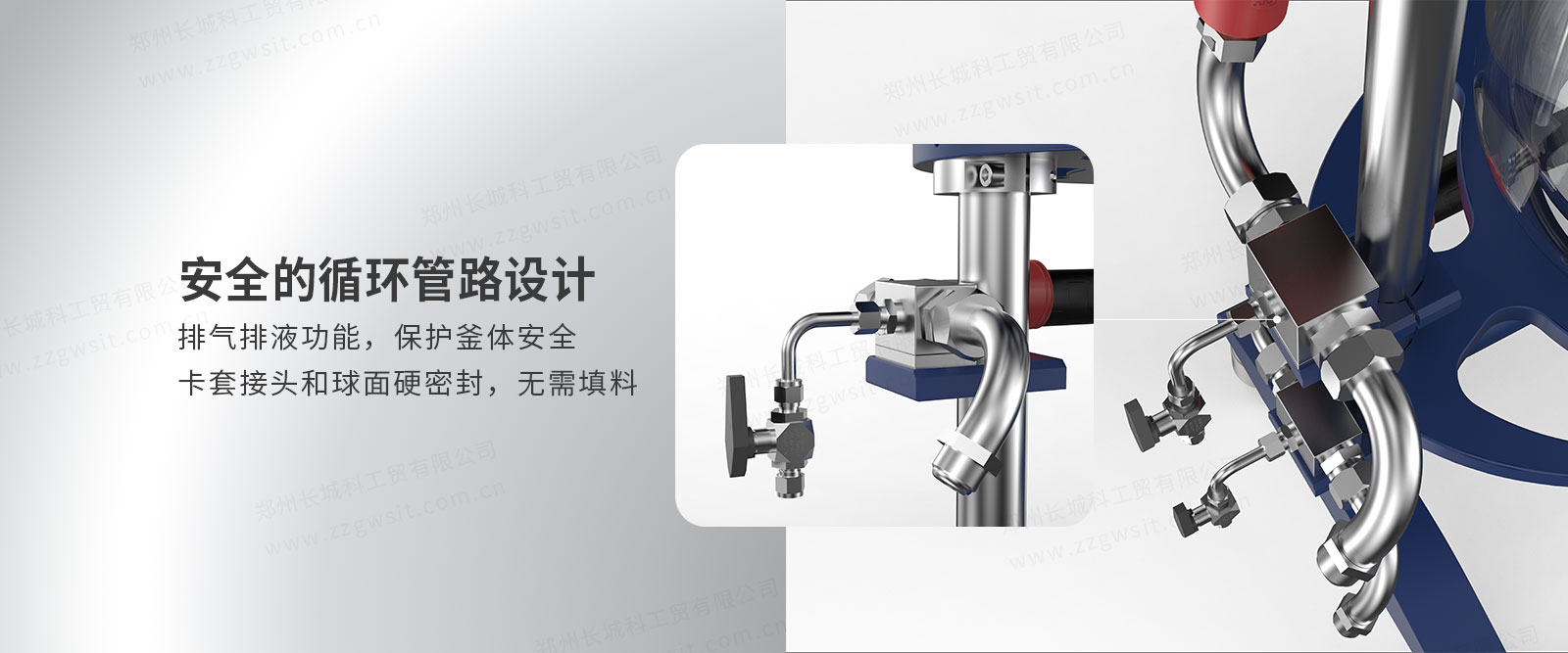 5、循環管路設計安全:排氣排液功能,保護釜體安全,卡套接頭和球面硬密封,無需填料;