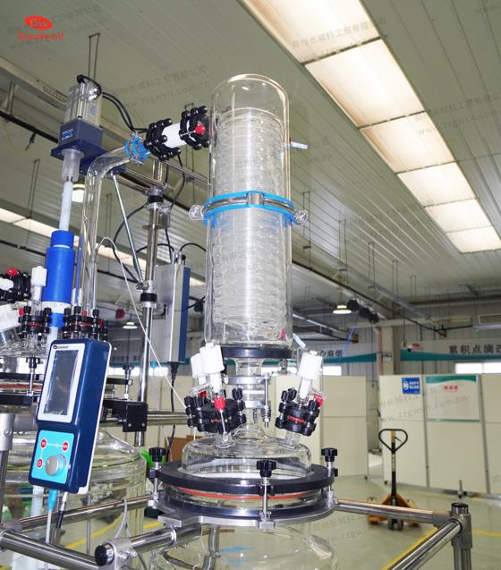 蒸餾冷凝效率直接決定電子化學品的最終收率與純度,本套100L蒸餾釜配置的冷凝器選用高硼硅玻璃材質的盤管式結構,可通過增大冷凝面積與優化冷卻水流道,確保蒸汽在進入溶劑回收罐前完成高效冷凝,有效避免高價值物料的逸散損失。